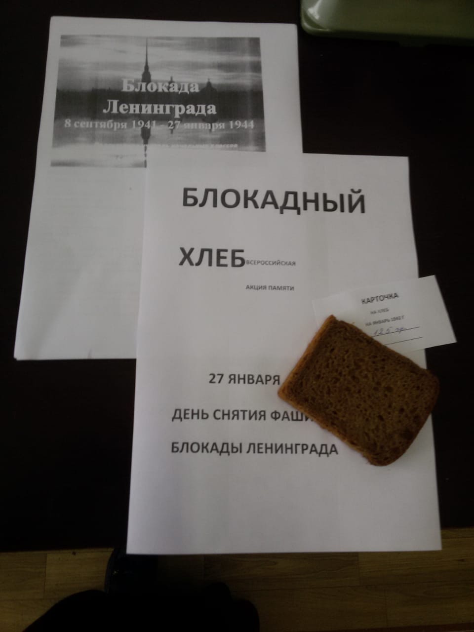 Кроме того, в рамках реализации Всероссийской акции памяти каждый обучающийся имел возможность получить 125 граммов чёрного хлеба. Именно такая суточная норма выдачи хлеба была установлена для жителей блокадного Ленинграда.