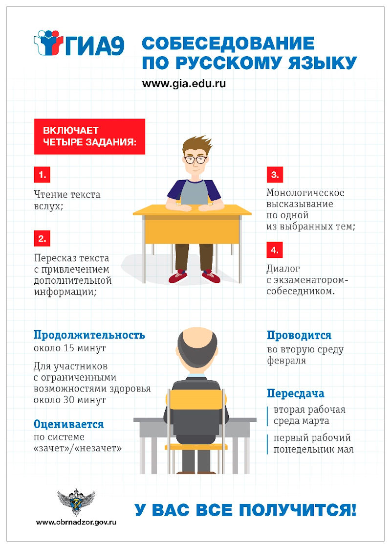 Информирование обучающихся о результатах итогового собеседования по русскому языку осуществляется образовательной организацией не позднее, чем через пять календарных дней с даты его проведения. Результатом итогового собеседования по русскому языку является «зачет» или «незачет».