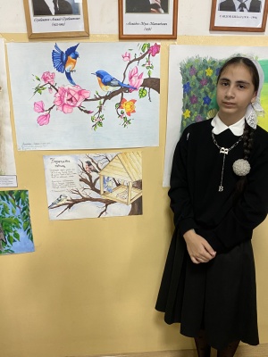 Победительница конкурса стенгазет в рамках праздника "День птиц",ученица 6 а класса Асхабова Сафия, приняла участие в районном конкурсе,посвященном ко Дню птиц.